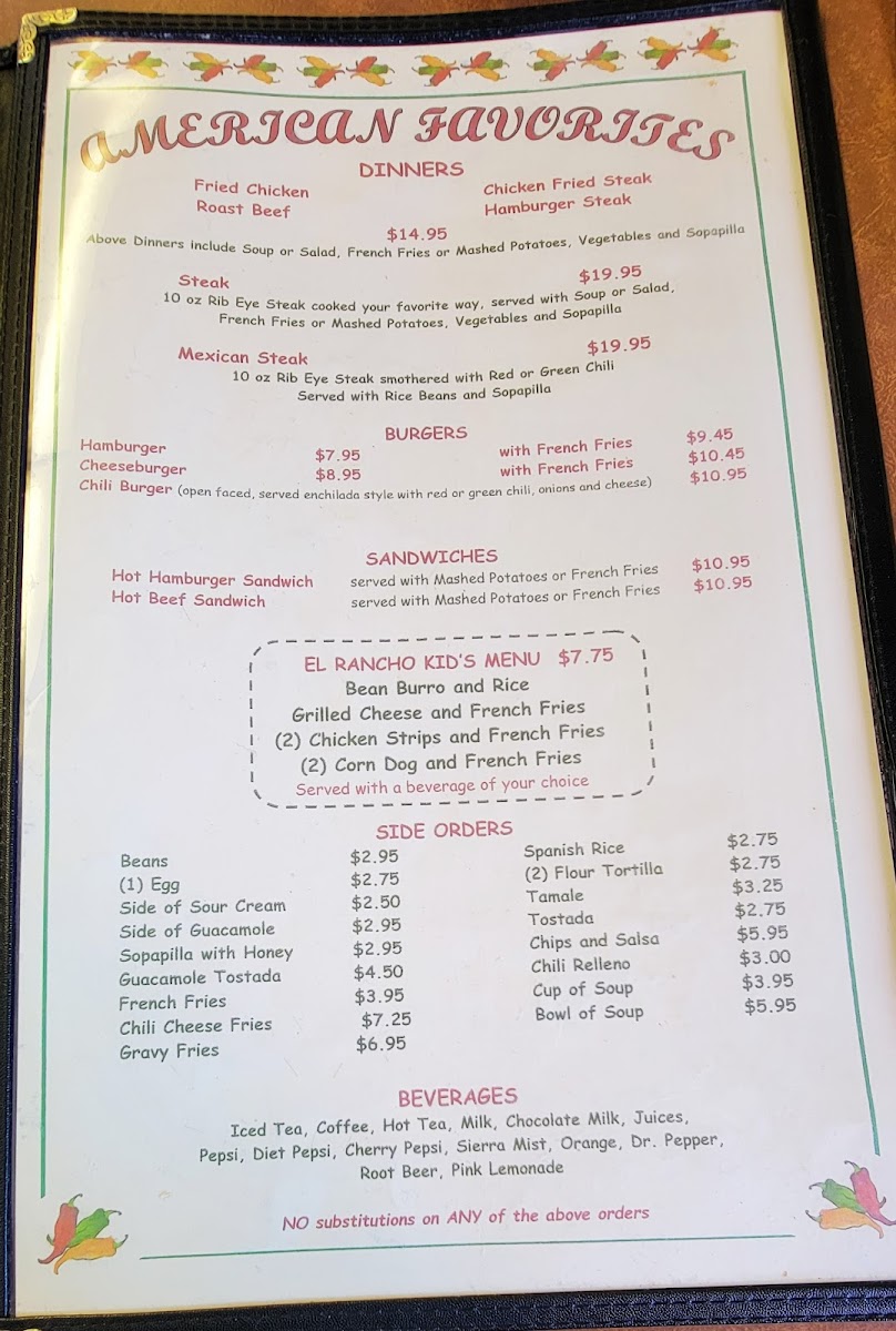 Customer favorites, like the shredded beef chimi paired with homemade green chili sauce and the enticing prickly pear margarita, elevate the dining experience. Many patrons rave about the friendly service and generous portions, which makes each visit memorable. El Rancho promises not only to satisfy your cravings but to ensure that each meal leaves you eager for your next visit. Experience the culinary delight of El Rancho where every bite tells a story!